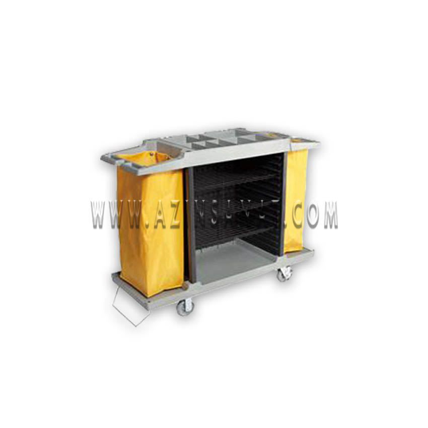 ترالی (ترولی) هتلی دارای دو عدد بین برزنتی جهت حمل لباس و زباله ، محل قرارگیری لوازم نظافتی ، محل قرارگیری حوله و دستمال می باشد .